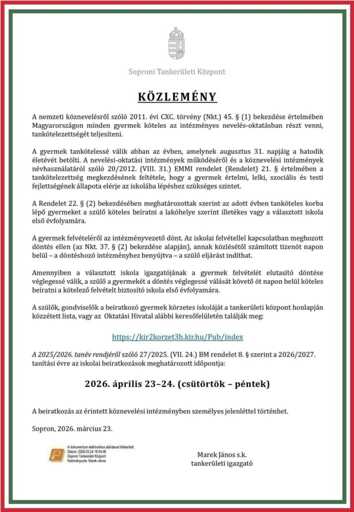 Óvodai Beiratkozás 2026/2027 nevelési év